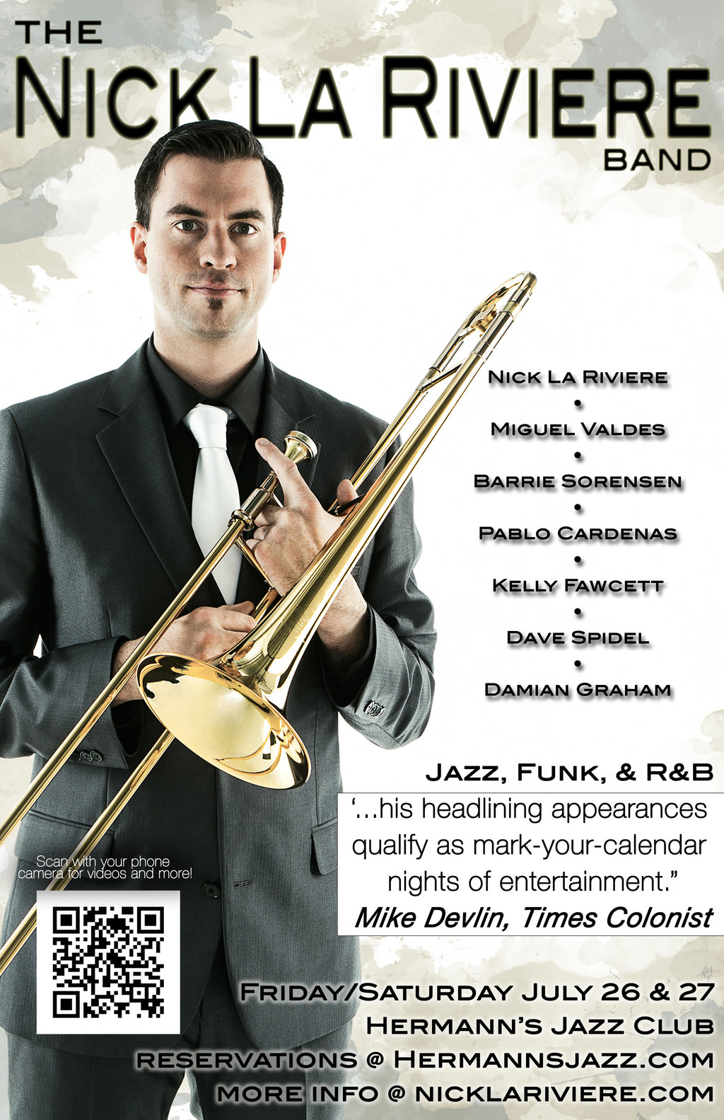 8:00pm - 11:00pm doors at 6:00pmSinger-songwriter Nick La Riviere is an accomplished trombonist who has toured internationally with bands such as the Juno award winning Paperboys, Michael Kaeshammer, 54-40, and Adonis Puentes. He's been a special guest with such bands as Steven Page (Barenaked Ladies), The Temptations, and Nikki Yanofsky. As a freelancer, he's one of Victoria's busiest musicians.