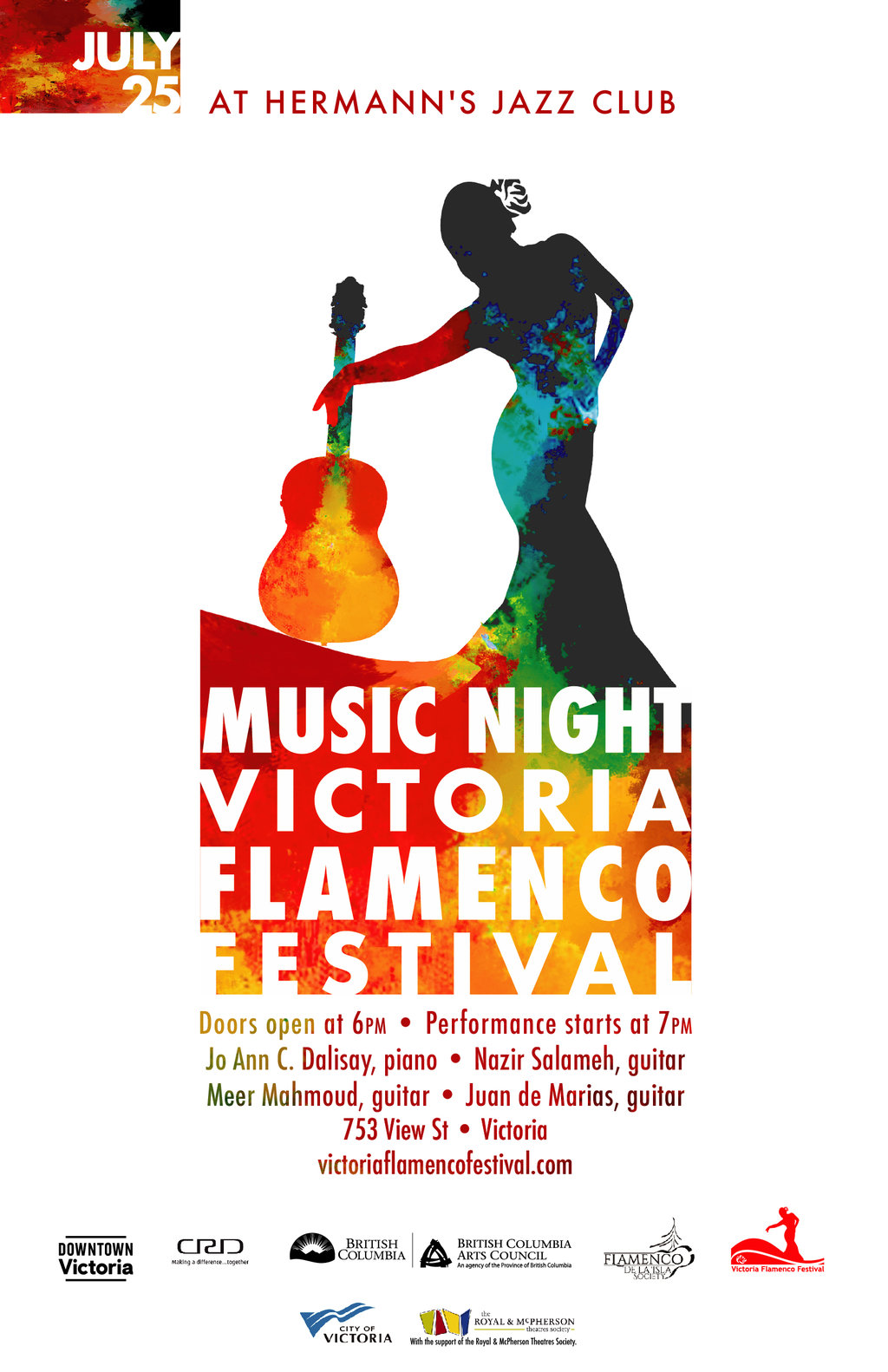 7:00pm - 10:30pm doors at 6:00pm"Enjoy the passion and rhythm of Flamenco featuring guitarists, Juan de Marias, Nazir Salameh and Meer Mahmoud with pianist, Jo Ann C. Dalisay in an exciting evening of traditional and innovative flamenco music."