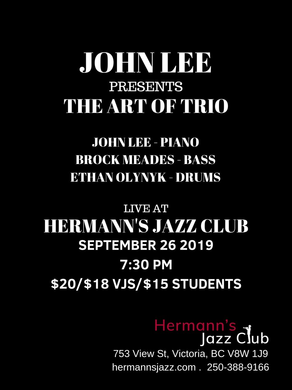 Multi-instrumentalist JOHN LEE presents a concert featuring a vast repertoire of compositions from the traditional to contemporary eras of Jazz arranged into the classic piano trio instrumentation. The Art of Trio explores the dynamics and nuances of a three-part interaction to achieve a creative act with rich and complex sounds.