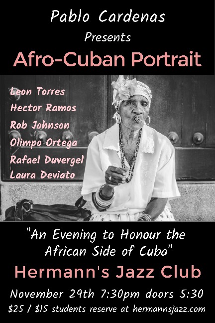 7:30pm - 10:30pm doors at 5:30pm“Afro-Cuban Portrait” is a show to dedicated to Afro-Cuban music, the most African side of Cuba, the rhythms that born from the Yoruba religion, Palo religion, the Cuban rumba, and other rhythms like Bembe. This side of Cuba is not so shown as it should as the Son and Salsa usually has brought more attention so this is a unique opportunity to experience the rich sounds of Afro-Cuban music.