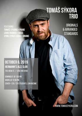 1:30pm - 3:30pm doors at 12;30pmSignificant melody as a legacy of the European music, jazz harmony, improvisation, emphasis on elaborate sound, thoughtful construction of music form, color of compositions - these are the main features of Tomáš Sykora Trio.
