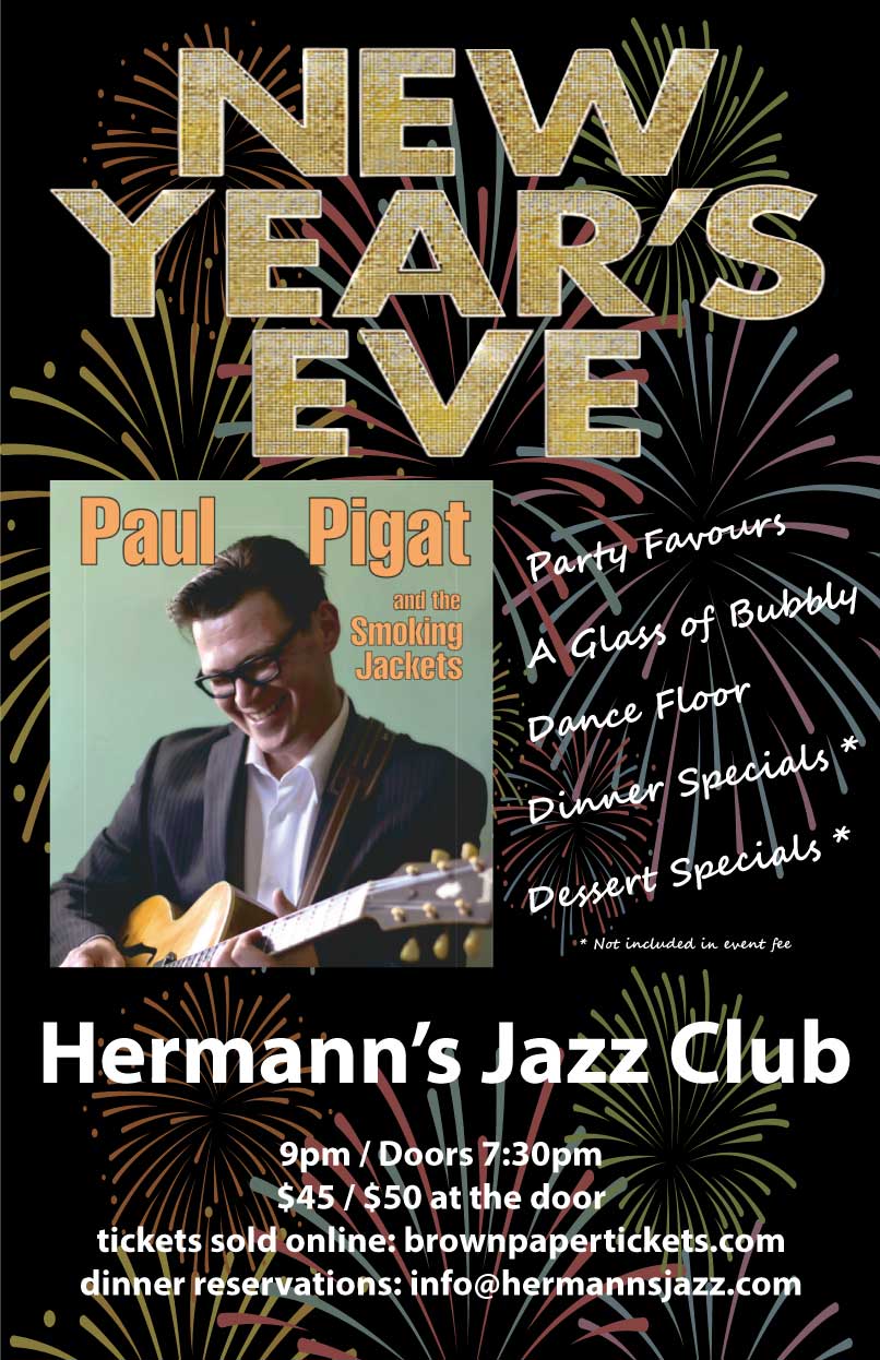 Come ring in the new year with Paul Pigat and The Smoking Jackets! It is going to be an amazing evening. Hermann's will offering 3 incredible entrees for dinner specials, and dessert specials!