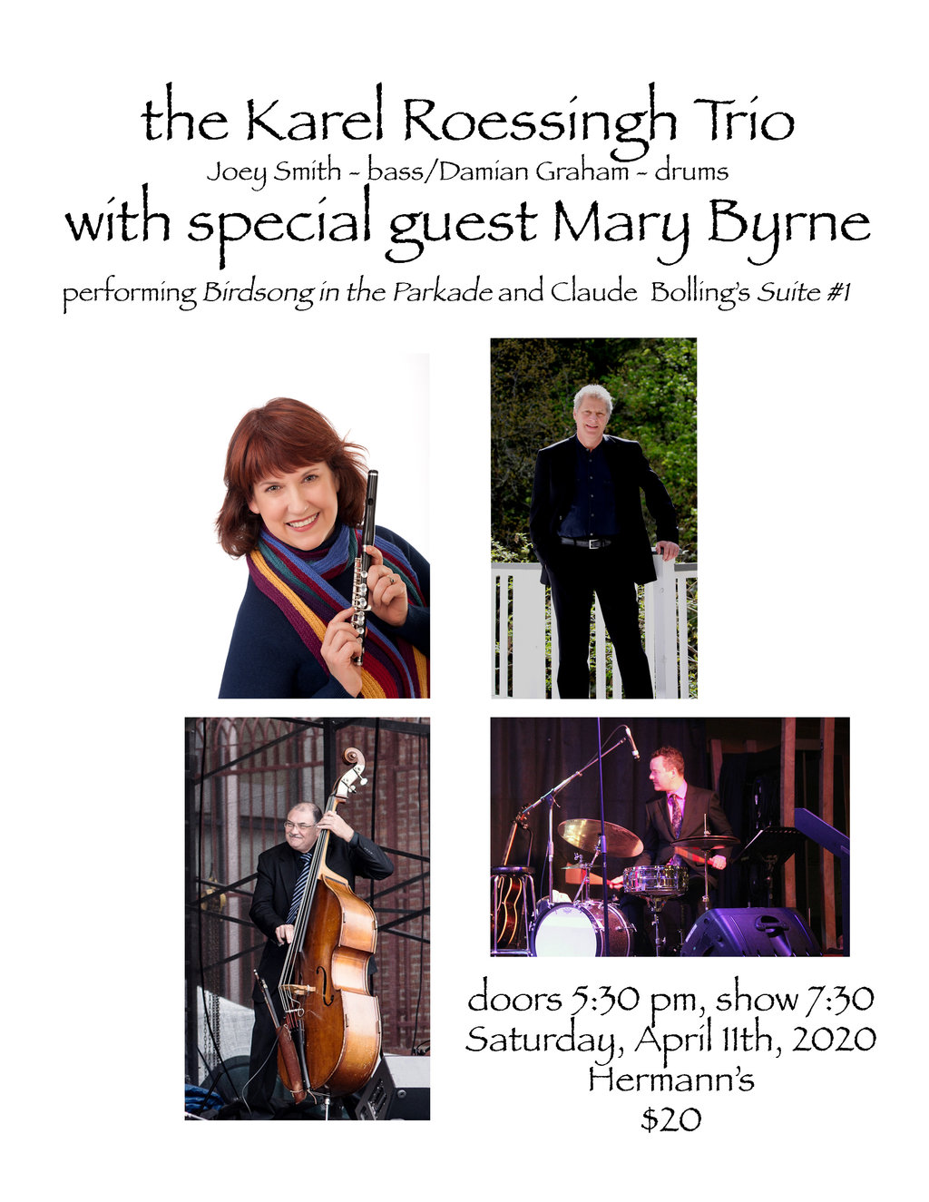 Band members: Mary Byrne flute, Karel Roessingh piano, Joey Smith bass, Damian Graham drums.