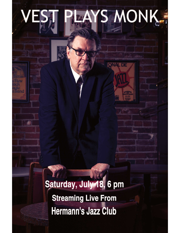 6:00pm - 7:00pm The David Vest Trio performs the music of Thelonious Monk, “the genius of modern music.” In addition to some rarely-heard Monk compositions (as well as some of the more famous songs), David will also play some of his original Monk-inspired music. Expect to hear some captivating stories about Monk and his music as well. By the end of the hour, you’ll definitely know what connects Monk to Irving Berlin and Bing Crosby!