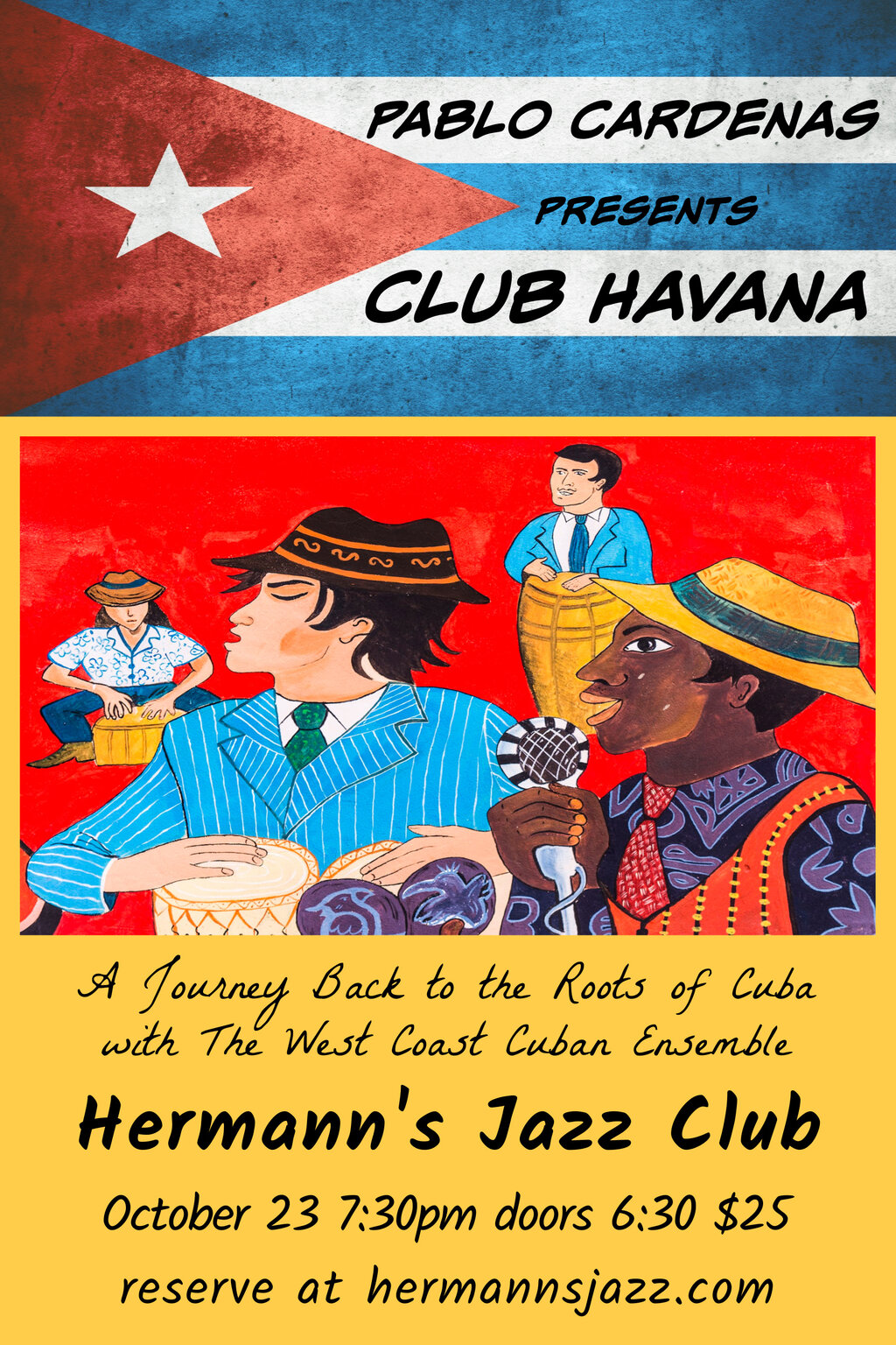Pablo Cardenas & The West Coast Cuban Orchestra will bring Cuba to Victoria for one night. Reserve at Hermann’s Jazz Club for tickets.