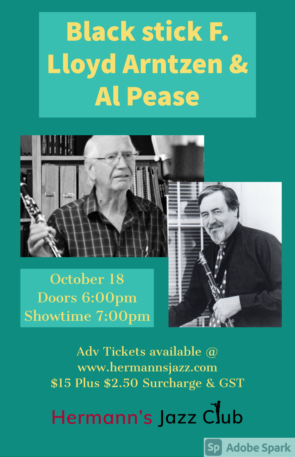 Lloyd Arntzen and Al Pease (clarinets and saxes) with Avram Mc Cagherty (banjo), Tom Vickery (piano) and Don Cox (bass) present classics from the Golden Age of Jazz with emphasis on the music of Johnny Dodds and Sydney Bechet.
