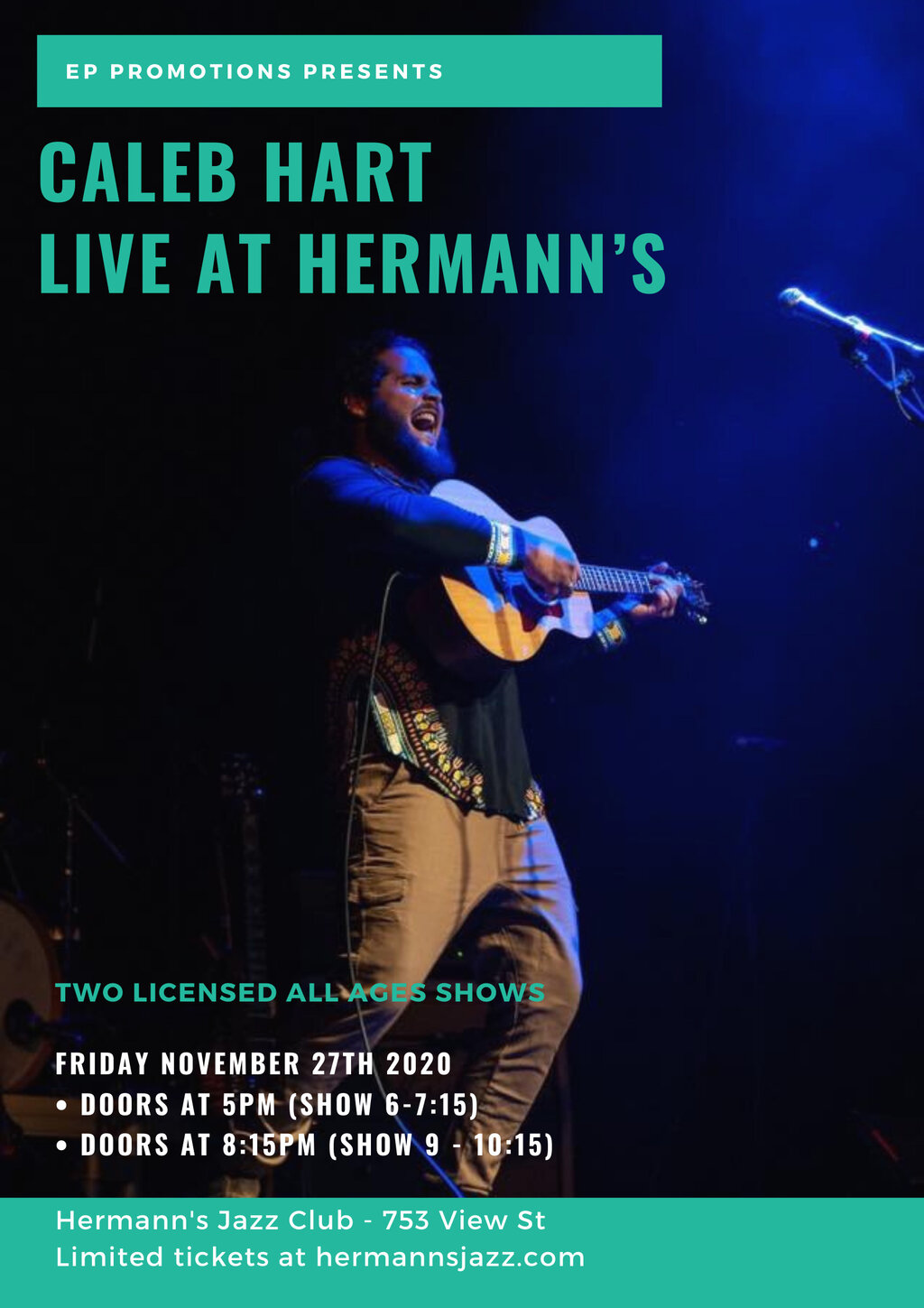 With nearly 1000 live performances since 2013 under his belt, Caleb Hart continually proves himself a captivating, passionate, and versatile performer. His reggae, soul, and Caribbean folk style of music as well as his message of love, hope, and unity bring audiences of diverse ages and backgrounds together for shows that are always special in their own ways. Join us for one of two in-person shows with strict Covid precautions in place, or catch the livestream from the comfort of your home.