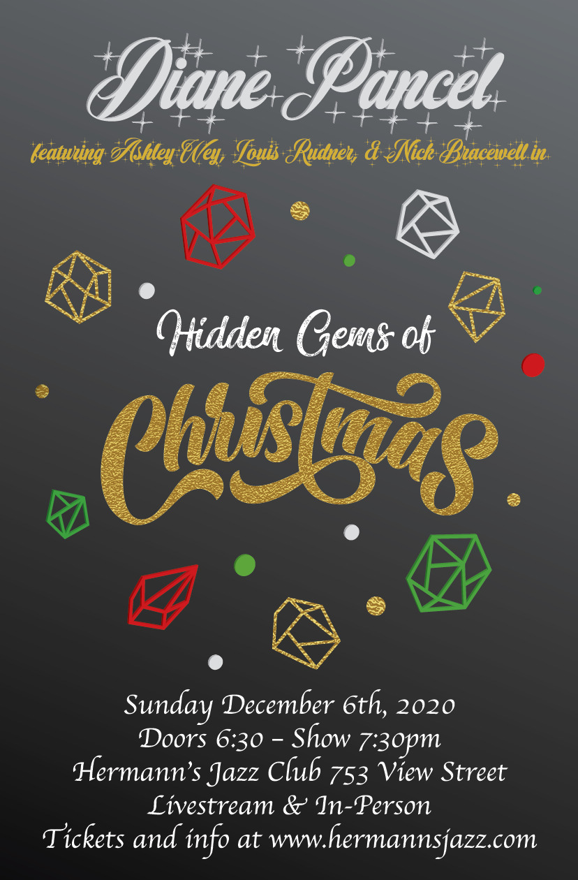 And now for something a little bit different! What better year than 2020 to put a spin on the typical holiday repertoire? Ring in the festive season with Diane Pancel and friends as they perform a unique selection of “mostly” Christmas-themed music, mined from some very unexpected places - the Hidden Gems of Christmas!