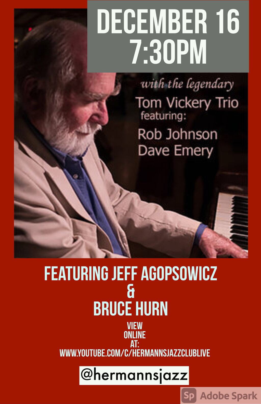 Tom Vickery, Rob Johnson and Dave Emery are an incredible trio that has so much fun! Straight ahead jazz, and a Victoria classic, Tom Vickery is one of the performers that have performed at Hermann's since it's inception. This Wednesday Tommy is featuring the incredible Jeff Agopsowicz & Bruce Hurn. A show not to be missed!
