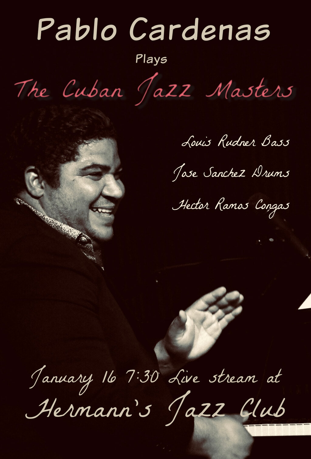 Pablo Cardenas is back to Hermann’s on January 16 with a selection of the best of Cuban Jazz with a stellar quartet that includes, Louis Rudner on the bass, Hector Ramos on the congas, and Jose Sanchez on the drums.