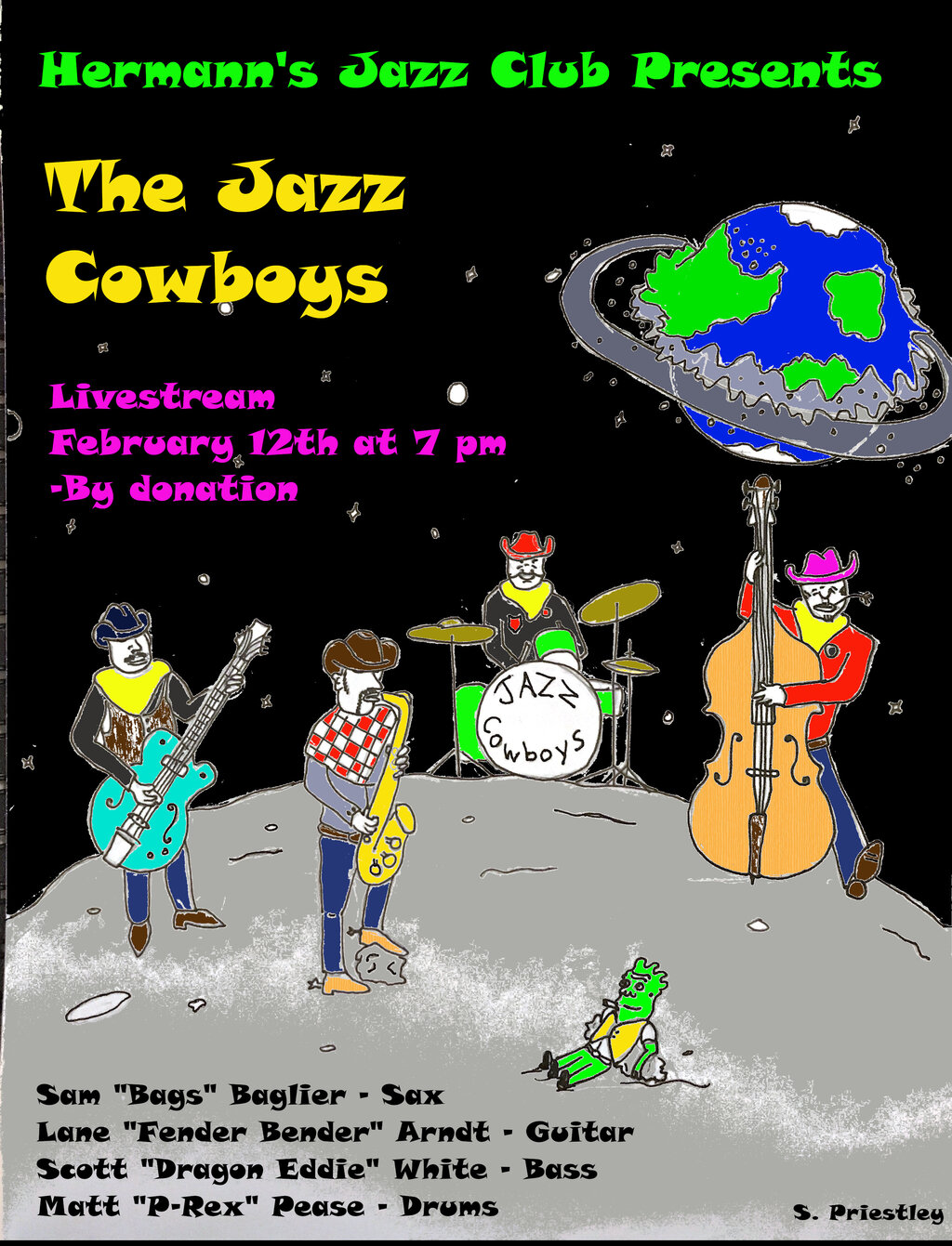 The Jazz Cowboys began riding the range in Victoria in 2018, but have strangely existed for over 100 years, playing fun-loving, mind-melting music that rides the rails between genres, ever searching for a note between B and C. These Cowboys weave effortlessly between modal dimensions, with a nod to the obscure but always devoted to the groove.