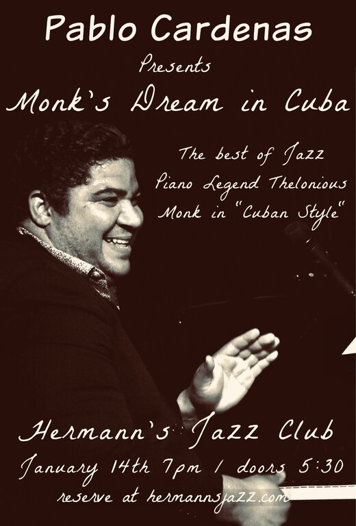 World class Cuban pianist Pablo Cardenas is back with a tribute to Thelonious Monk, one of the best Jazz composers of all times. He will play Monk’s best hits “the Cuban way”, using Cuban rhythms, and adapting the melodies to this new concept. An stellar line up and special guests will be joining him on his first show of 2022, a musical experiment to not miss.