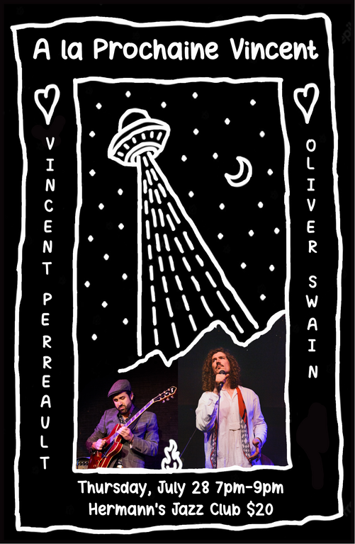 7:00 - 9:00 doors at 5:30Vincent Perreault was a busy performing and touring artist in Montreal when COVID-19 hit. Maybe having a doctorate in music also gave him insight into global pandemics because he moved to Victoria that year to teach music at Victor Brodeur. Oliver Swain was introduced to Vincent on a street corner in downtown Victoria shortly after Vincent became one of his most prolific collaborators and closest friends. Together they have created music across the province with groups like Club Voltaire and BIG MACHINE but it's their chemistry as a duo that gives them a chance to explore the diverse talents that make them such unique artists. Vincent will be moving back to Quebec this August, July 28th will be the last chance to see him at Hermann's and the first time to see them in this powerful duo setting.