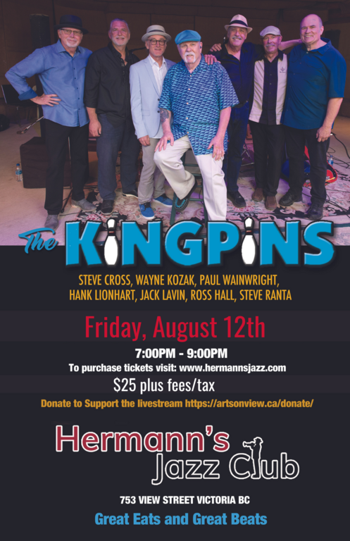 7:00 - 9:00 doors at 5:30The Kingpins have been performing their brand of original high energy R&B dance music since 2003 and show no signs of stopping. Fronted by the lion-voiced Big Hank Lionhart and powered by a 7-piece horn-driven rhythm section, this exceptional band will have you up and dancing from the very first tune! Come and swing the night away