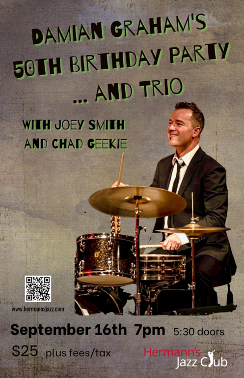 The Damian Graham Trio consists of drumming/singing/talking sensation Damian Graham, local legend Joey Smith on bass, and Chad Geekie on piano.