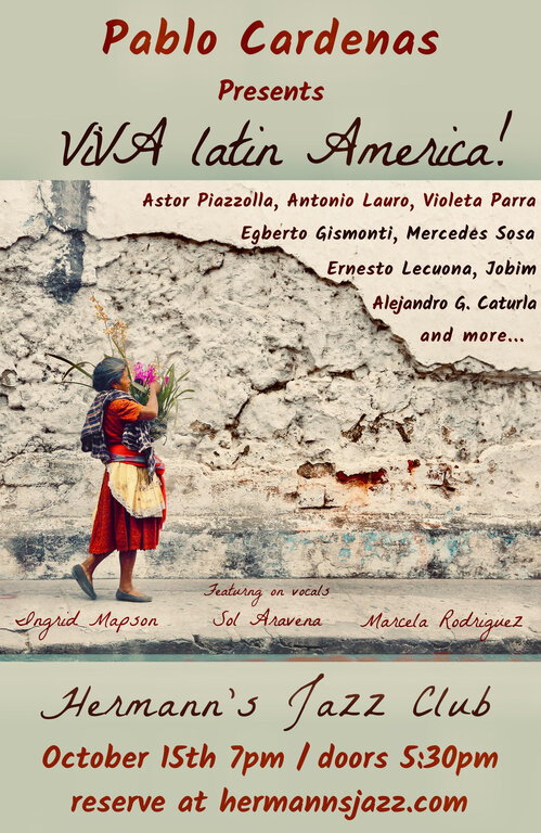 An amazing line up and a group of special guests will join Pablo on this evening, including the outstanding vocalists (Sol Aravena (Chile), Marcela Rodríguez (Colombia), Ingrid Mapson (Argentina / Canadá), there will be other surprises that you would have to come find out on what will be an evening to remember.