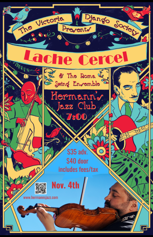 7:00 - 9:30 doors at 5:30Originally from Bucharest Romania, Lache Cercel is a world leader and innovator in the Roma Swing genre first developed by Django Reinhardt and Stéphane Grappelli. Together with The Roma Swing Ensemble, Cercel lays classical and improvisational jazz alongside traditional renderings. Cercel plays with the outrageous virtuosity found in contemporary European Roma recordings, and adds his own vision. https://lachecercel.com/
