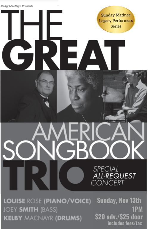 A powerhouse trio featuring the legendary Miss Louise Rose, the superlative Joey Smith, and the stellar Kelby MacNayr, the Great American Songbook Trio presents a special concert dedicated to the incredible composers of the Jazz Age.