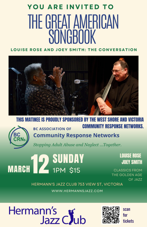 *Please note, the special duo concert takes the place of the regularly scheduled Great American Songbook Trio as drummer Kelby MacNayr must be absent but will be joining vocalist Denzel Sinclair with the Victoria symphony.