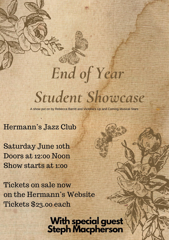 1:00 PM - 3:00 PM doors at 12:00 AM"Student Showcase" Up and coming musicians from Victoria get their chance to show off on a real stage! With special guest, Steph MacPherson.