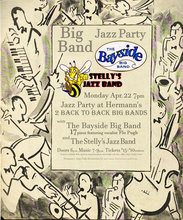 The Stelly’s Secondary School Jazz Band is made up of 20 students ranging from grade 9-12. The band plays about 5 concerts a year in and around the community. They perform a wide variety of music from traditional swing to Latin and even rock tunes. The band is excited to make their first appearance at Hermann’s alongside the Bayside Big Band.