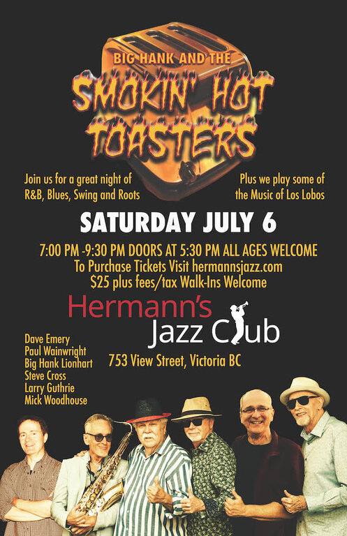 The summer festival circuit has also embraced The Smokin’ Hot Toasters and the band has made main stage appearances at The Edmonton International Blues Festival, The Nanaimo Blues Festival, Beaumont Roots n Blues Festival, Calgary International Blues Festival, the Victoria Inner Harbour Blues Festival, Island’s Folkfest in Duncan BC and Butchart Gardens concert series as fans love the sound of the band that is spearheaded by the band’s co-founders, vocalist Big Hank Lionhart and guitarist Steve Cross.