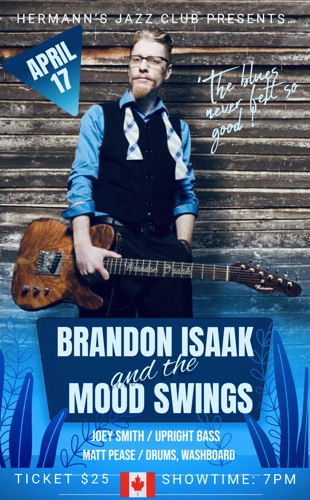 Crowds always leave Brandon’s shows with a smile on their face and a need to come back for more. This Yukon born songster performs a mixture of thoughtful, humorous, spiritual and catchy memorable songs; always delivered with world class guitar, harmonica and vocals. Lyrics are paramount and it’s obvious when you see his accolades and hear his music. After 35 years in the business, this international touring artist is always asked back as he’s a total pro off and on the stage. If you like top notch blues, hard hitting lyrics and great night of entertainment, Brandon Isaak is your man.